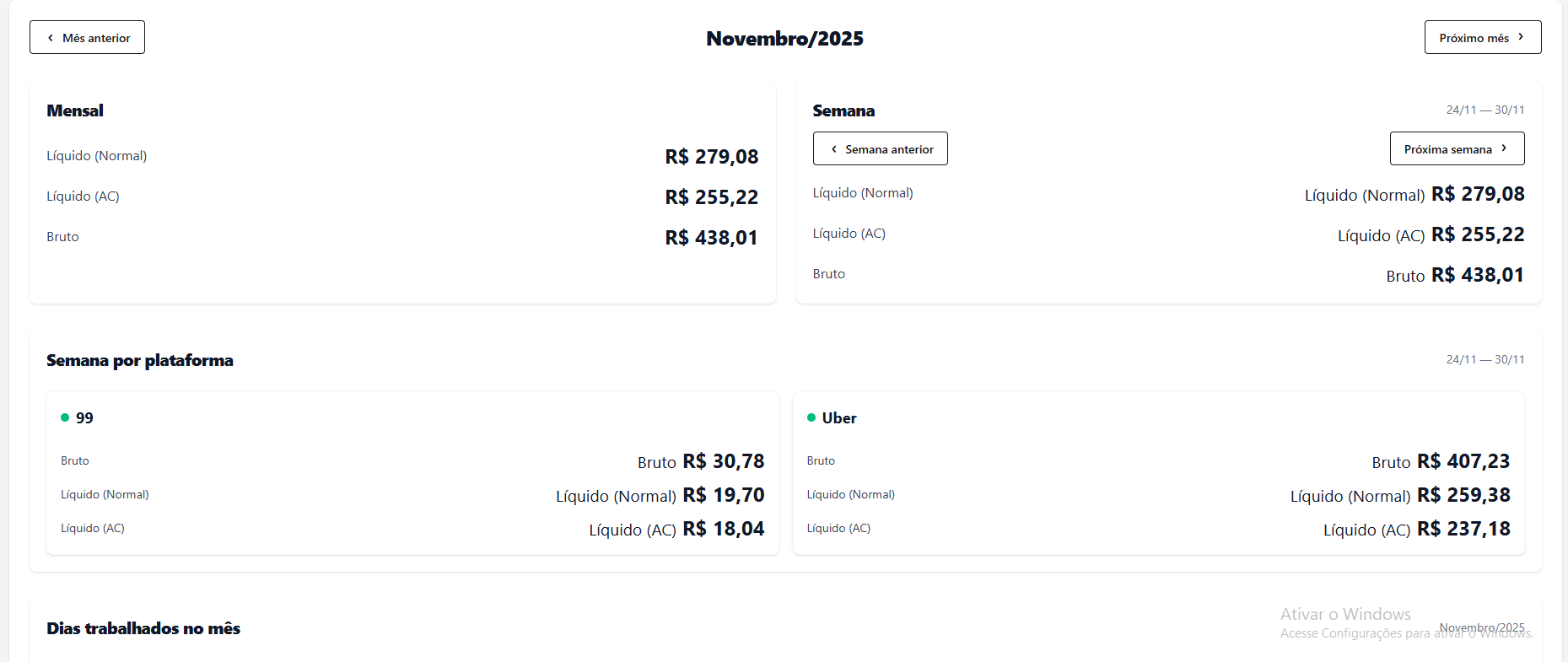 Informe ganhos nas plataformas